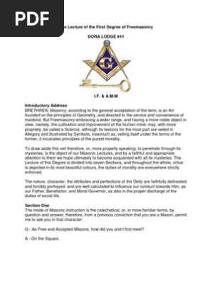 The Lecture Of The First Degree Of Freemasonry Pdf Freemasonry Masonic Lodge