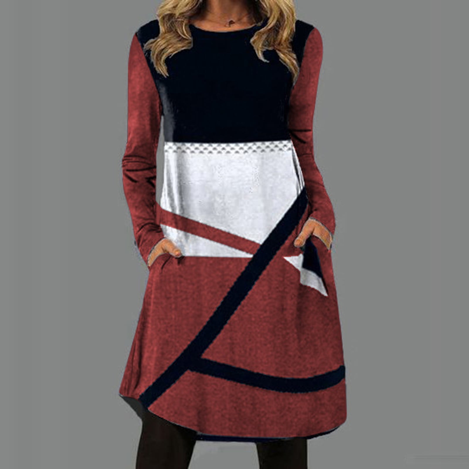 Tawop Fashion Casual Women O Neck Long Sleeve Positioning Printed Pocket Dress Long Sleeve Round Neck Dress Slip Dress Walmart Com